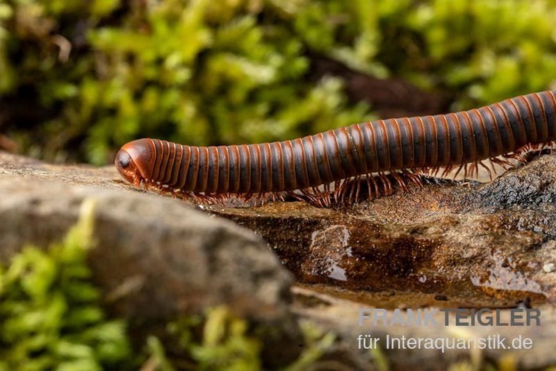 Orange Piphun-Tausendfüßer Spirobolus sp. “Orange Piphun” konnten bereits erfolgreich im Terrarium nachgezüchtet werden. Das Weibchen legt ihre Eier im Substrat ab.